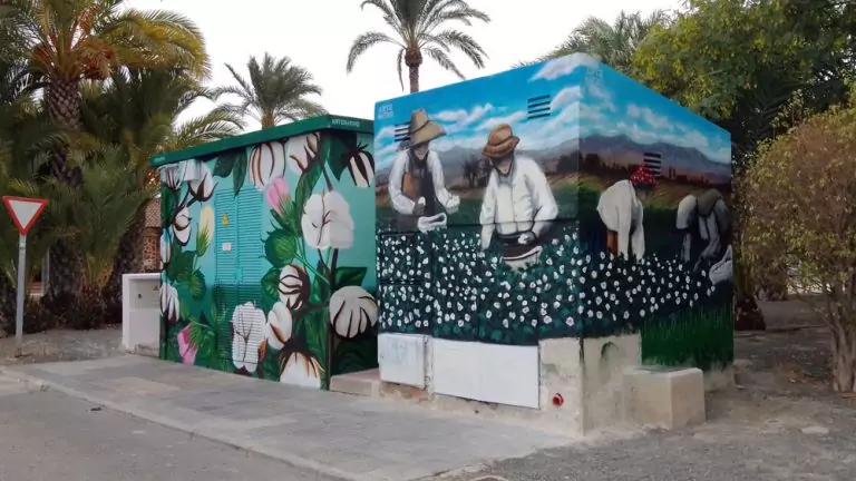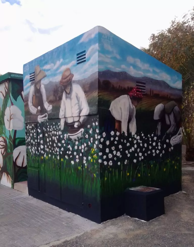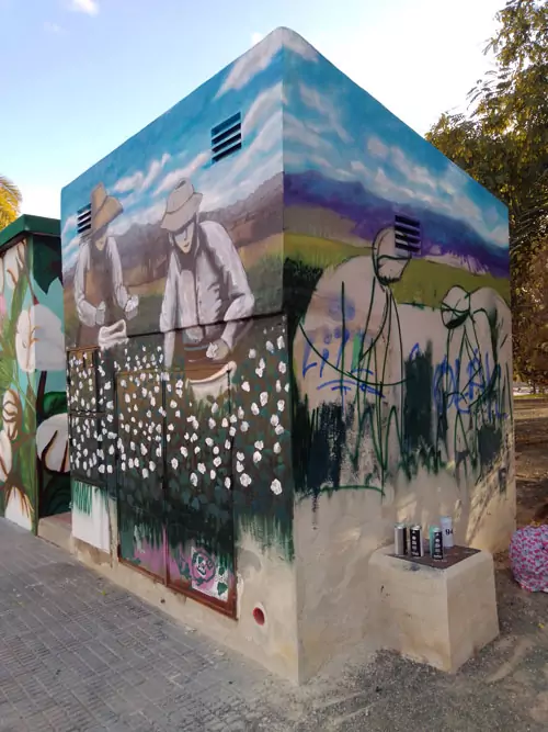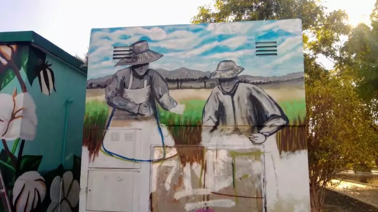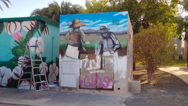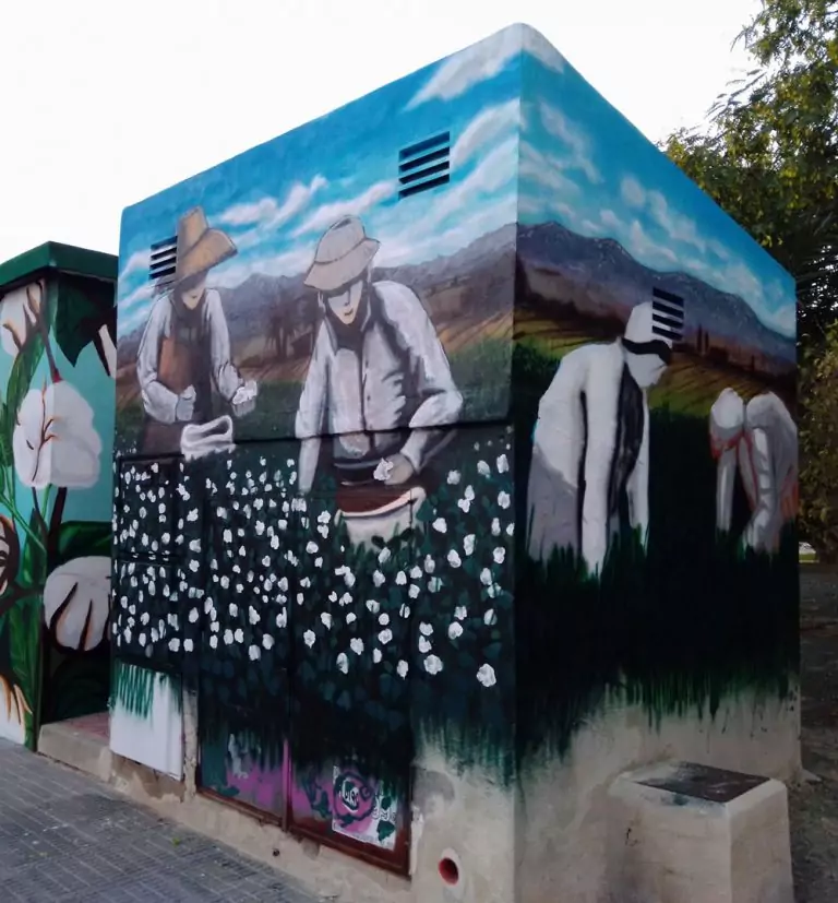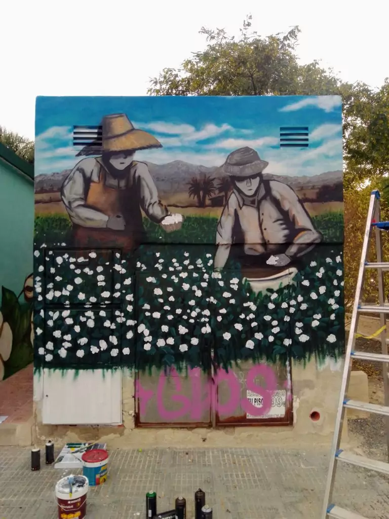 Mural recogida de algodón 1980 Posted on 2 enero, 202118 agosto, 2023 by Artenativo Mural en honor a los cultivadores de algodón de los años 80.